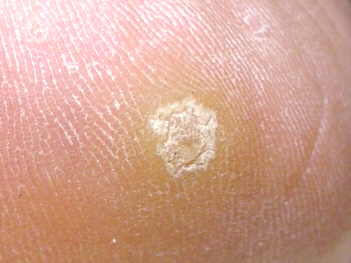 물리적 마찰에 의해 발생하는 질환으로 심지가 있어 그대로 두면 점점 깊어집니다. 피부세포가 기계적 자극을 지속적으로 받아 피부 장벽을 유지하기 위해 반응적으로 증식하여 박히게됩니다. |